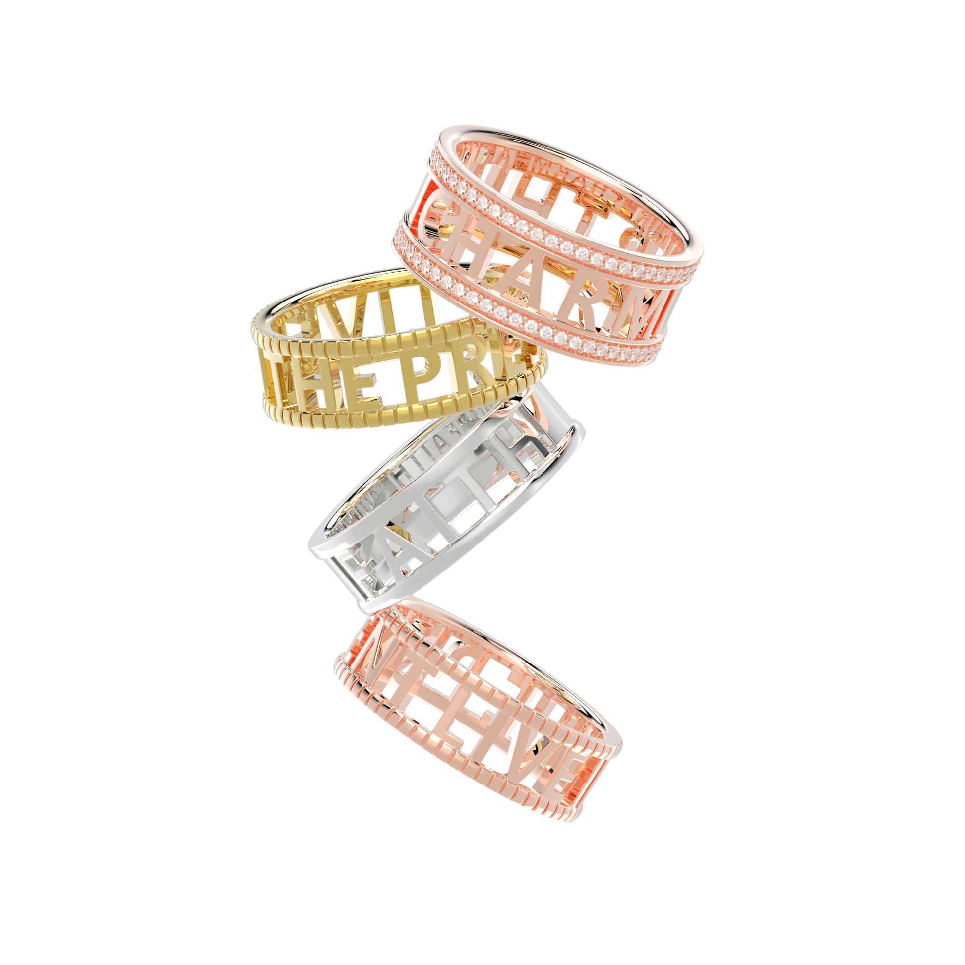 The Customique Signature Ringis a fully customizable ring that turns your words into timeless jewelry. Whether it’s a name, a mantra, or a special message, each ring is carefully crafted in high-quality metal with options like sleek plain bands, pavé accents, or delicate beaded edges. Available in gold or rhodium tones, it's perfect for everyday wear or meaningful gifting. A refined way to celebrate identity, love, or memory—designed just for you.